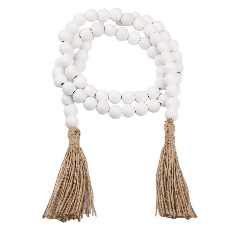 Beads with Tassels Hanger - 5FT LONG 20mm beads - WHITE - NEW523