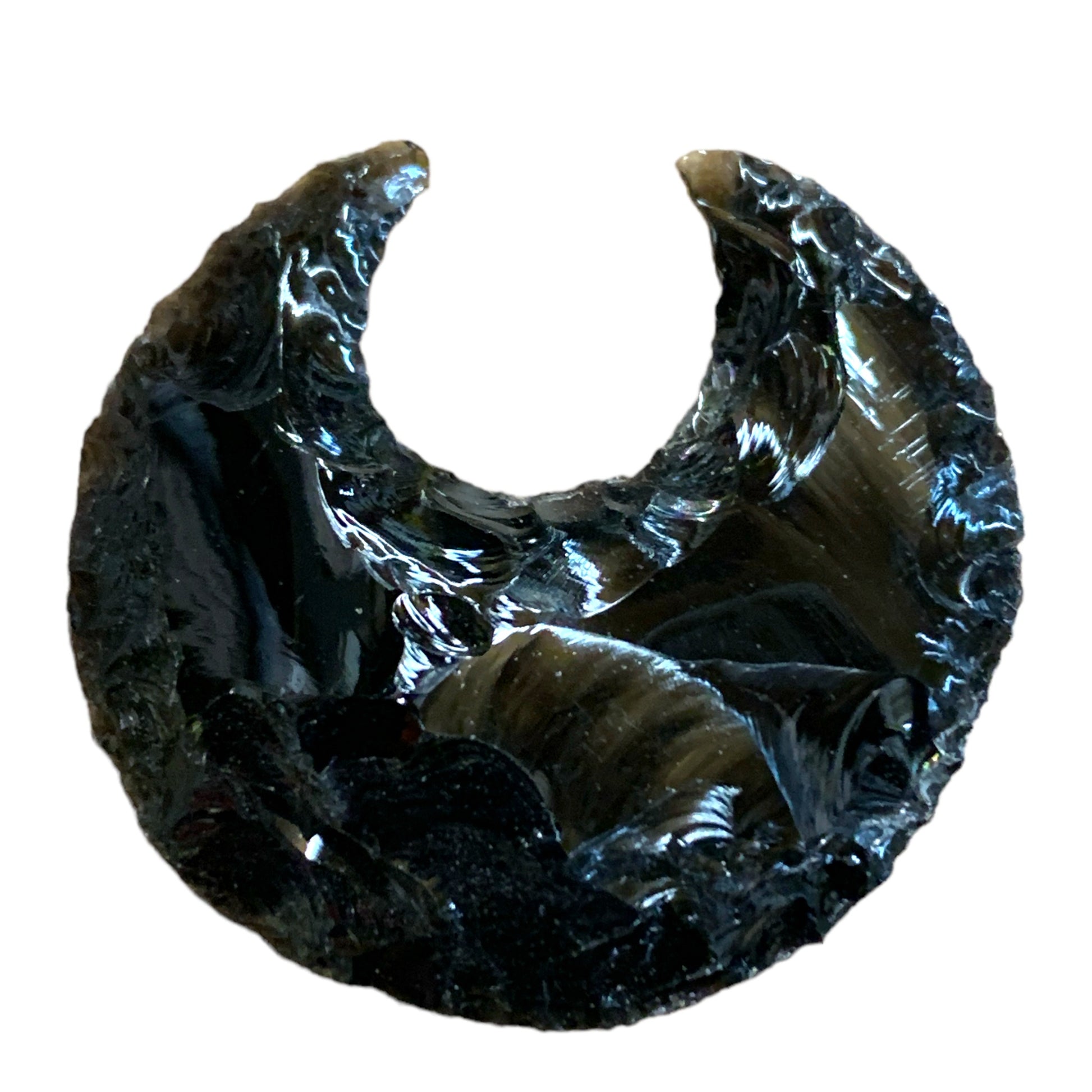 BLACK OBSIDIAN Flinted Crescent Moon - 35mm - India