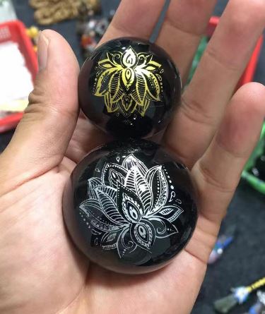 BLACK OBSIDIAN with Gold Lotus Flower Engraving - 50mm - Sphere NEW922
