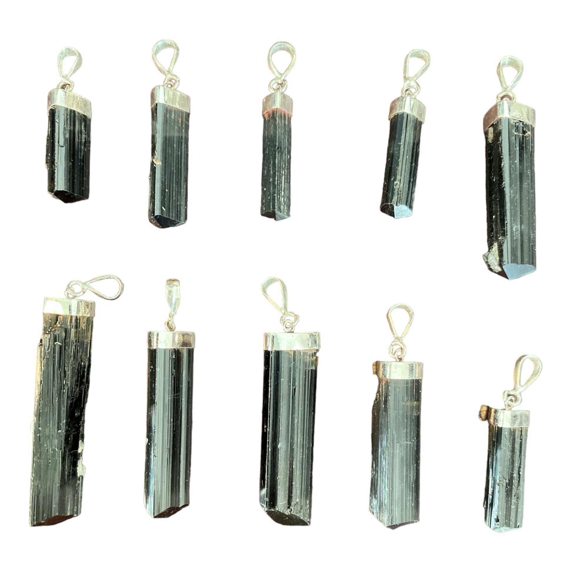 Black Tourmaline Pendant with S.925 - Size 14 - 20mm Long - Pakistan - NEW124