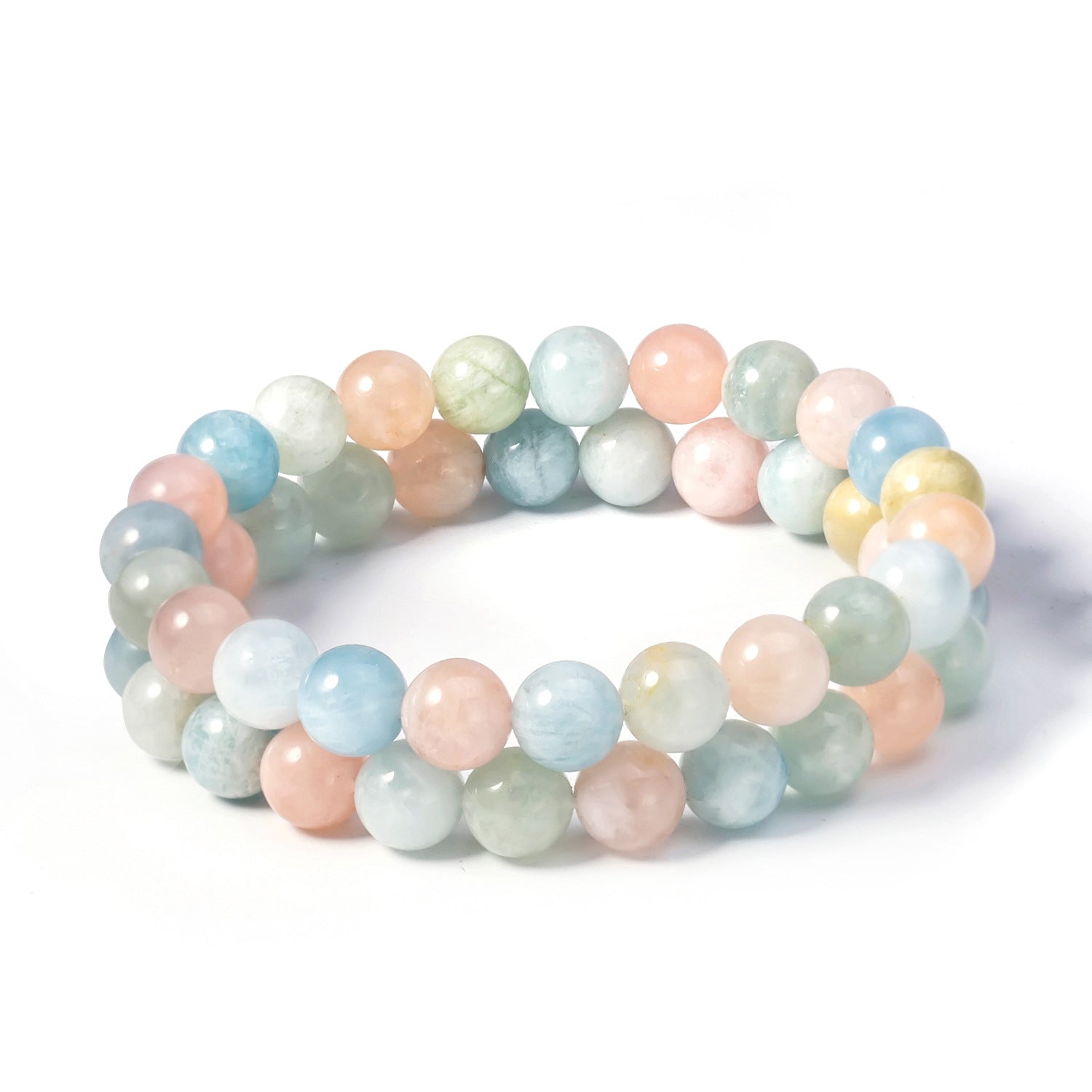 Morganite Bracelet Polished - 8mm Beads -Approx 7.5 Inch