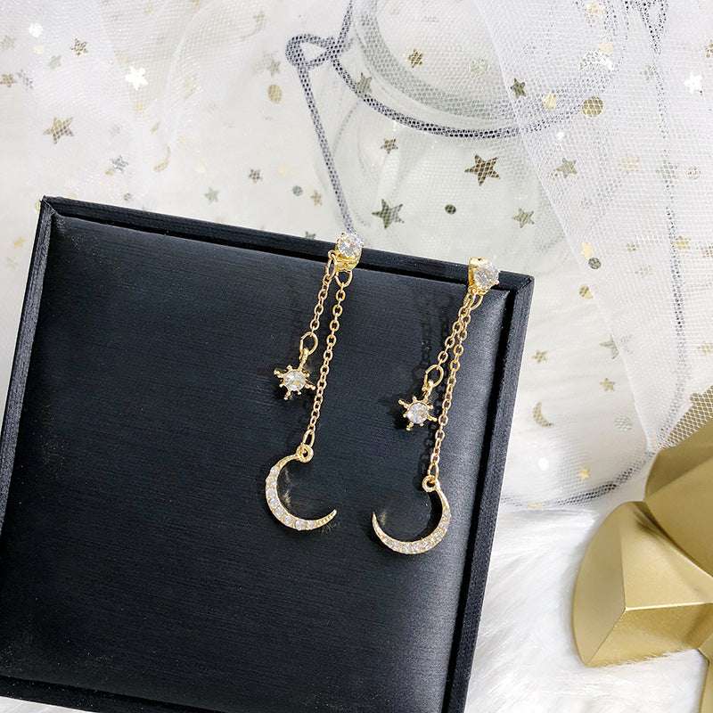 Sterling Silver Drop Earring with Brass Moon and Star Silver Color Plated with rhinestone 60mm 3.2 G - China - NEW922