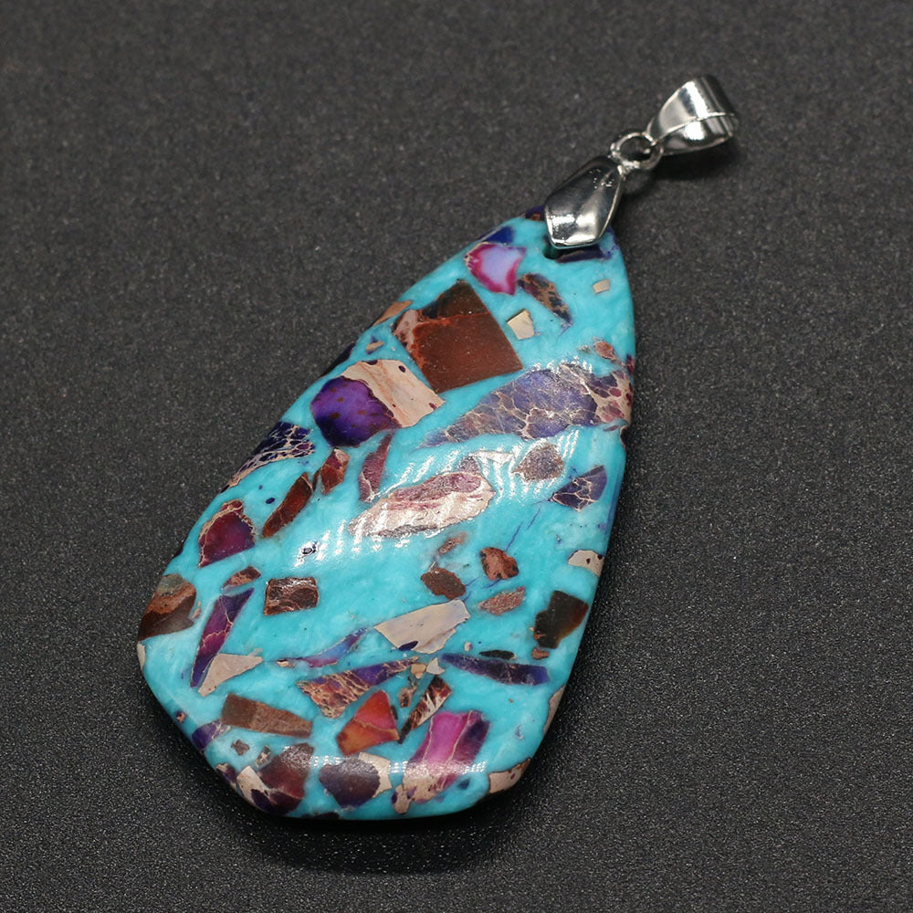 Synthetic Turquoise Teardrop Pendant with Stone inlay - Brass Silver Color Plated - 30x50mm - China - NEW922