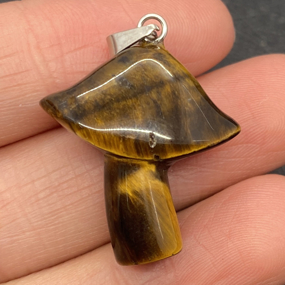 Tigers Eye Gemstone Mushroom Pendant with Brass Silver Color Plated Hole - 22x29mm - China - New1122