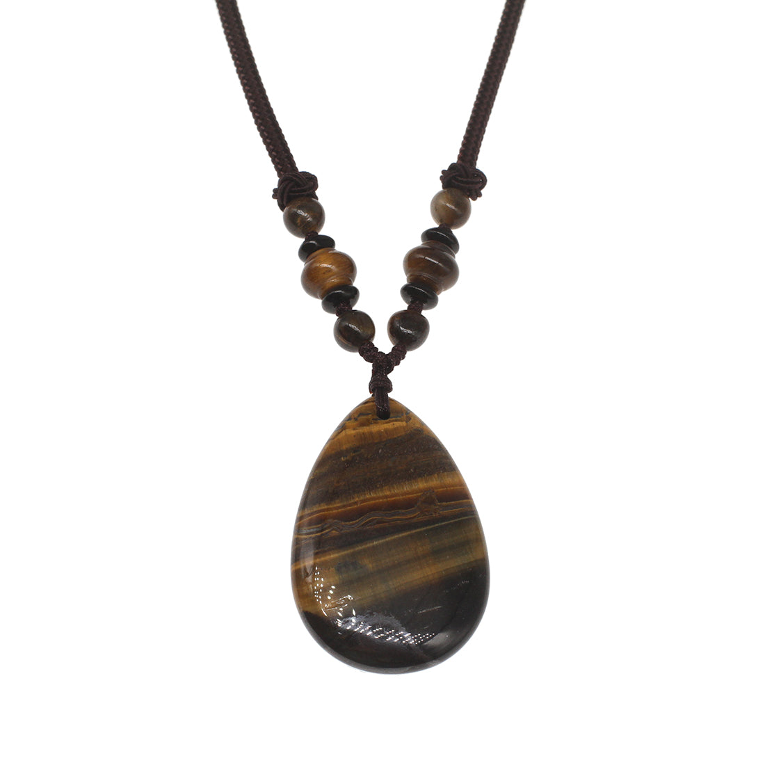 Tigers Eye Gemstone Pendant with Necklace - 42x27mm - Length 12 inch - 26g - NEW922