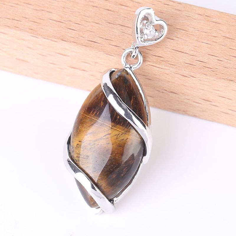 Tigers Eye Gemstone Pendant with Rhinestone - Silver Color Plated Brass - 37x17mm - China - NEW922