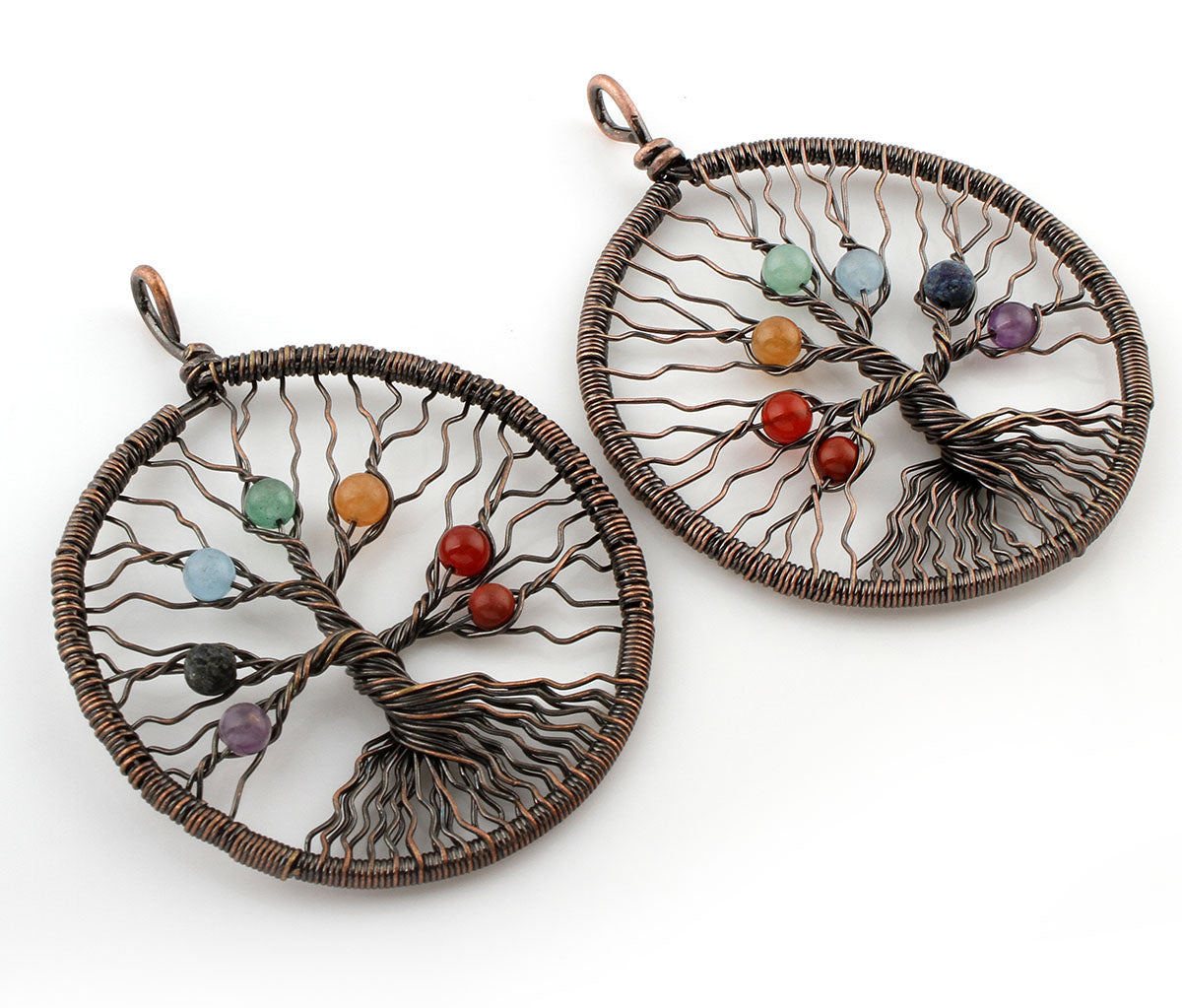 Tree Of Life Brass Pendant with Gemstone Antiqued Copper plated Natural