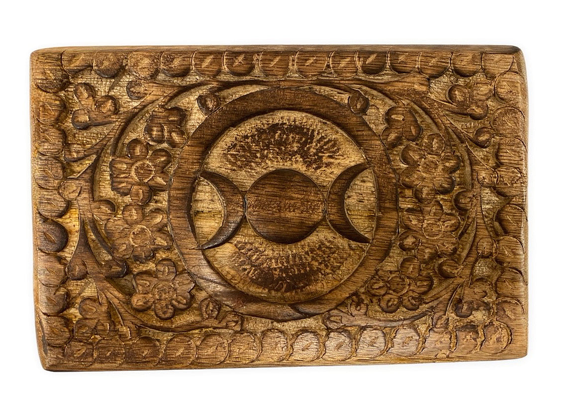 Triple Moon - Carved Wooden Box - 4 x 6 inch - India - NEW322