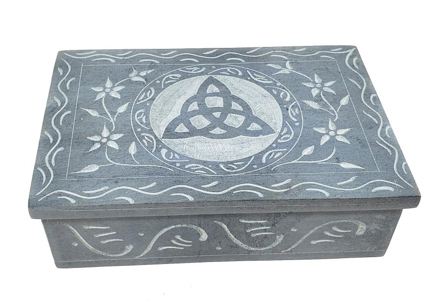 Triquetra Carved Soap Stone Box - 4 x 6 inch - NEW1222