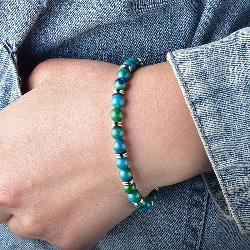 Turquoise Bracelet with 316L Stainless Steel Phoenix Blue Gold - with 1.18inch extender chain - 6mm x 7.48 Inch - NEW1122