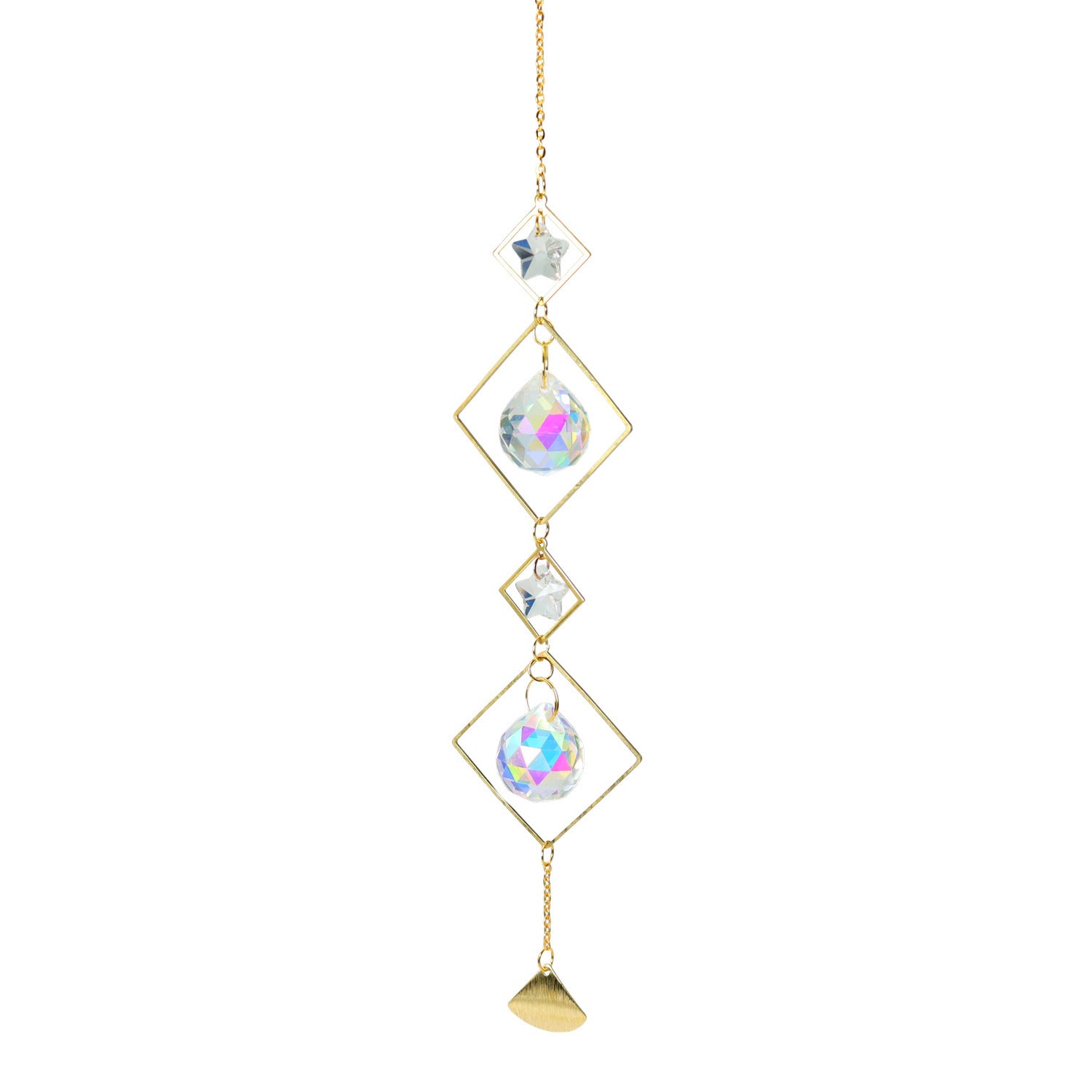 K9 Aura Crystal Hanger Suncatcher 2 Moons 2 Stars Brass Color - 16 inch - Twinkle Hanger Sun Catcher Prism