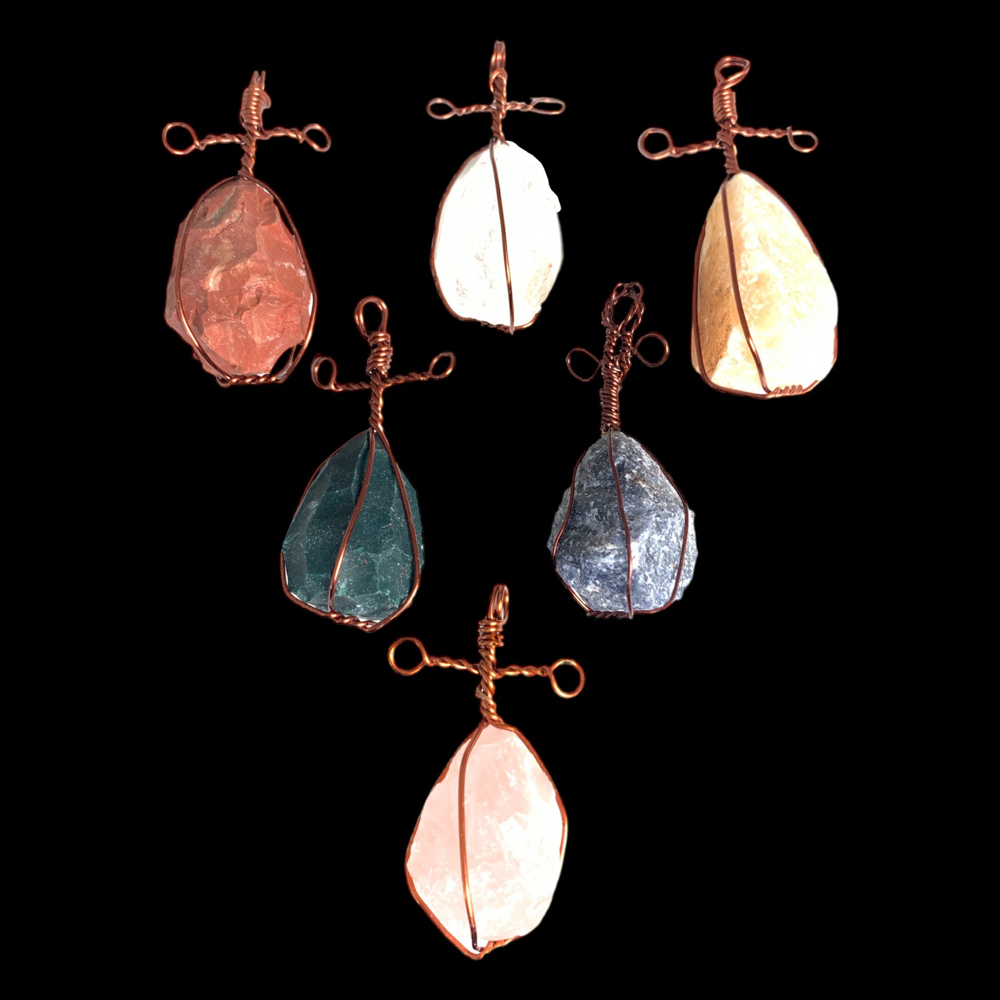 Pendant Wire Wrapped Jasper Agate Calcite Quartz Rose Quartz