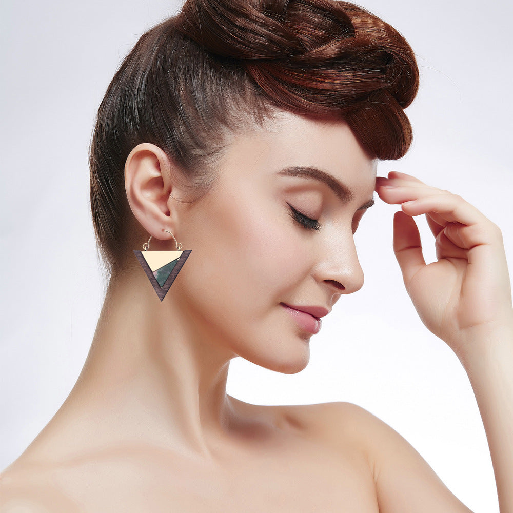 Natural Stone & Wood Drop Earrings - 25x35mm - NEW521
