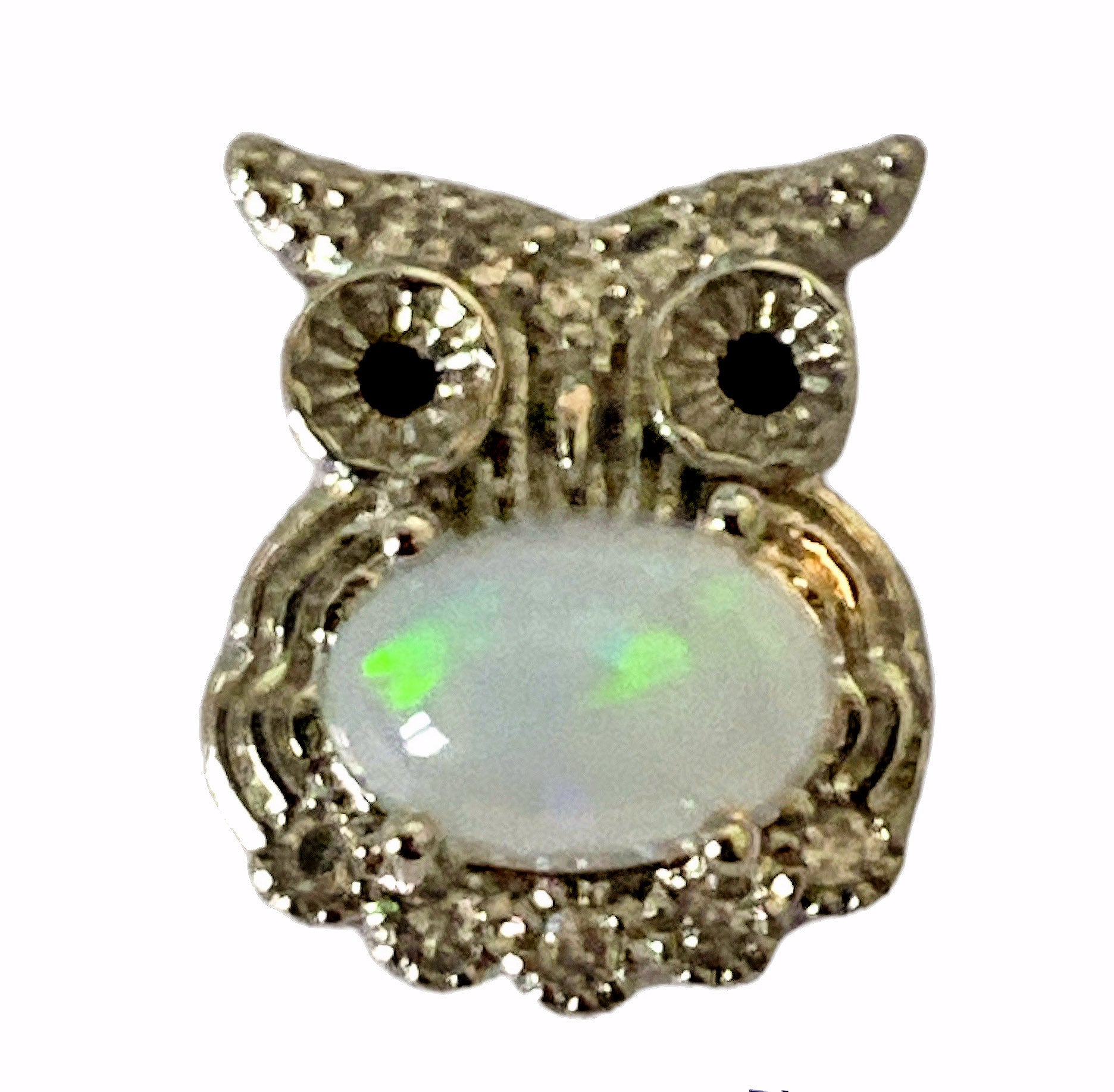 Opal OWL Pendant with Rhinestones - Silver Color Plated Metal - 10x8mm - China - NEW922