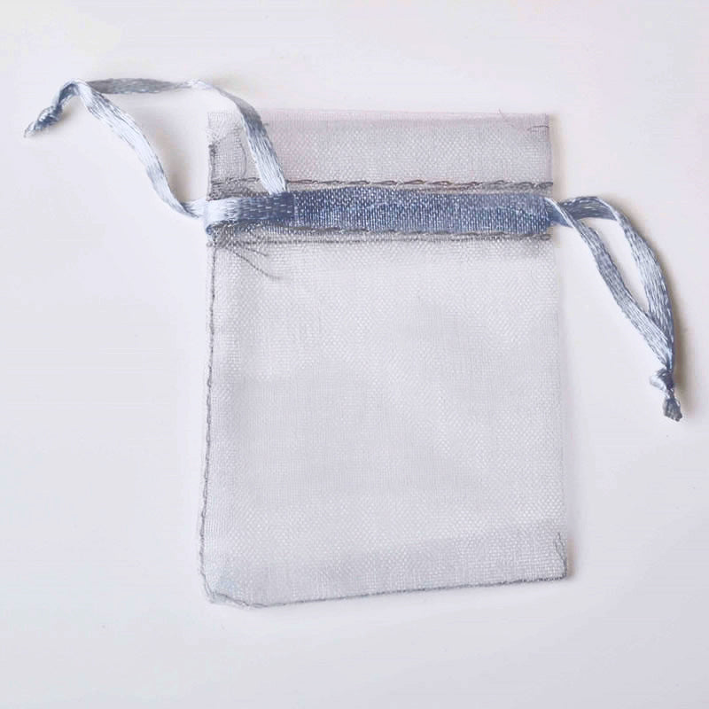 PK/100 Silver 4.25 x 6.5 inch ORGANZA POUCH BAG - RECTANGLE with Draw String - 11x16cm