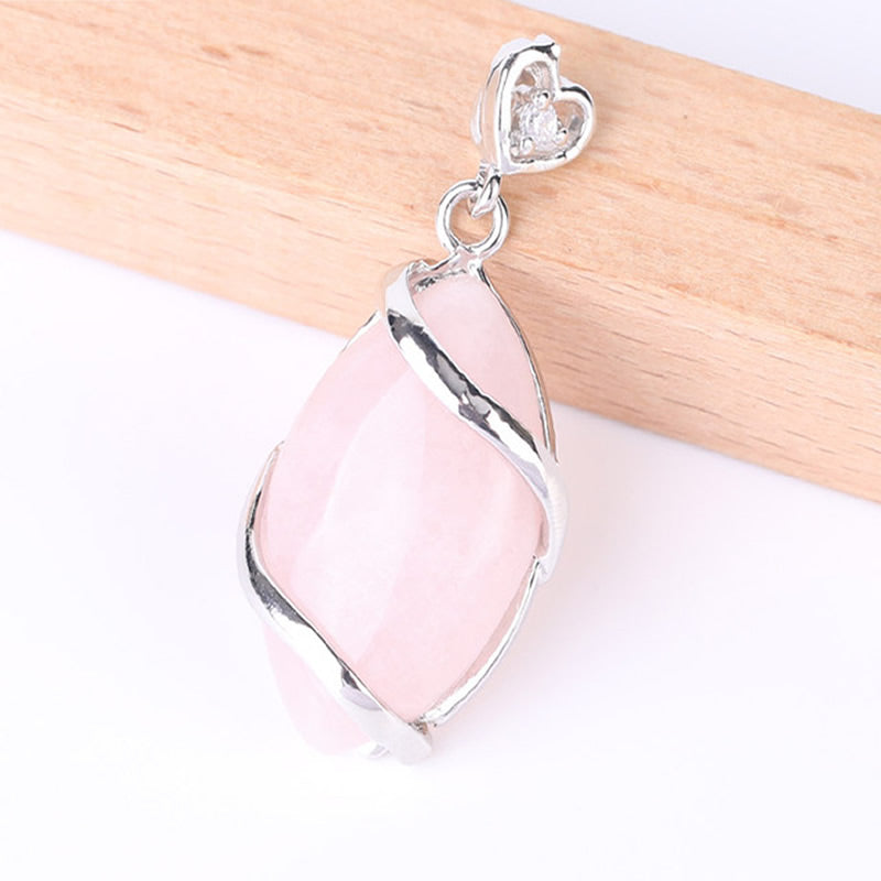 Rose Quartz Gemstone Pendant with Rhinestone - Silver Color Plated Brass - 37x17mm - China - NEW922