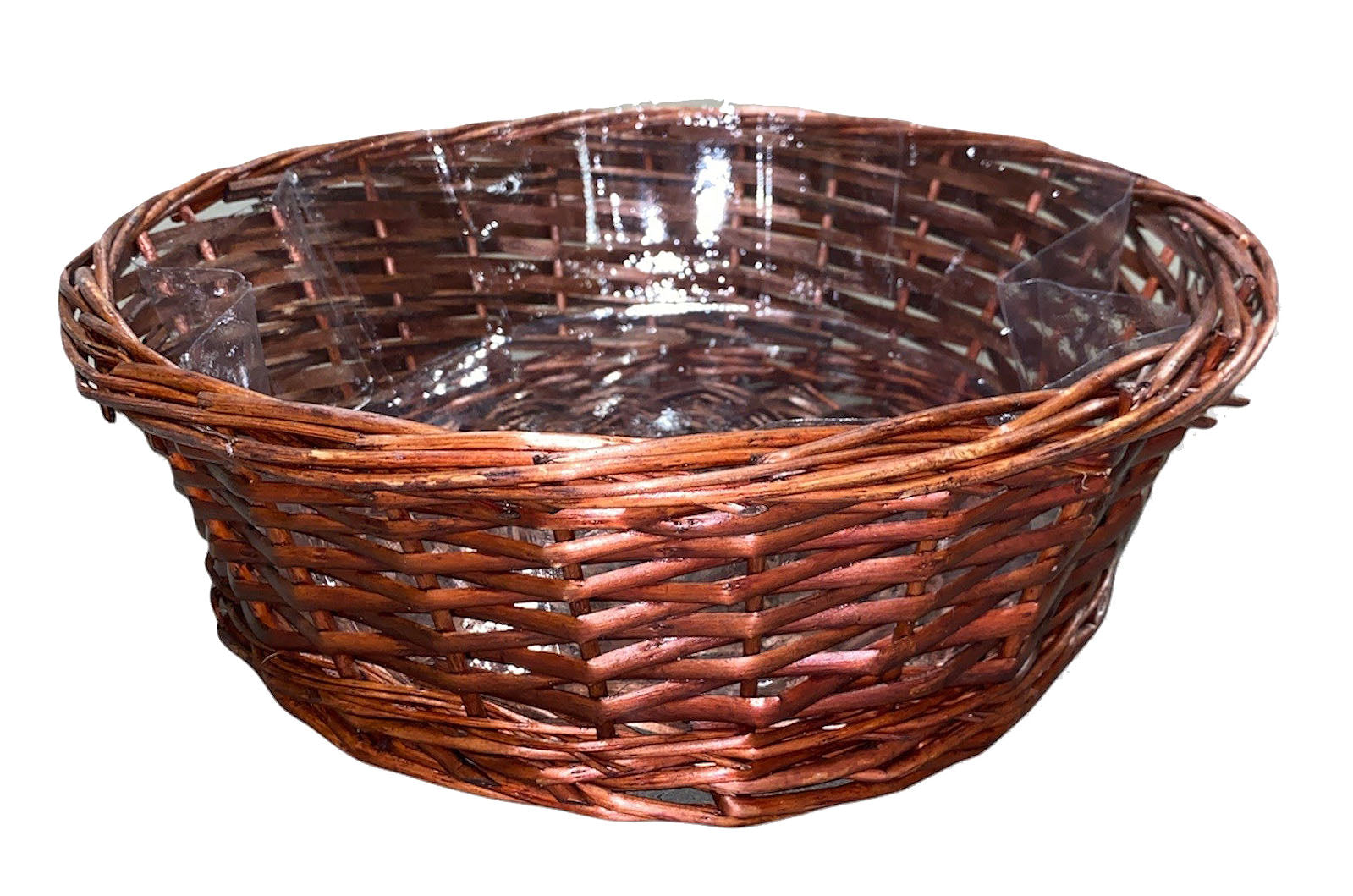 Round Split WILLOW TRAY - 10.36 x 4.78 inch deep - STAINED BROWN - with Hard Liner - fits a 18x24 basket bag - NEW222