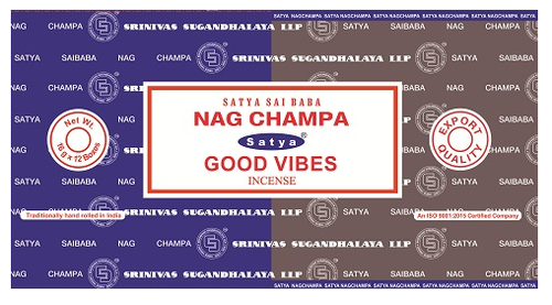 Satya Combo Series - Good Vibes & Nag Champa Incense - Box of 12 Packs Each pack contains 8gms of each scent - 16g NEW421