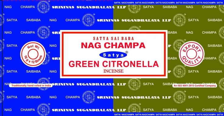 Satya Combo Series - Green Citronella & Nag Champa Incense - Box of 12 Packs Each pack contains 8gms of each scent - 16g NEW421