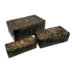 Set of 3 Celestial Inlay Floral Hand Carved Wooden Box - 8 x 6 to 5 x 5.5 inch - NEW423