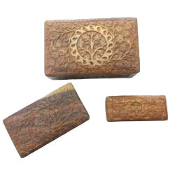 Set of 3 Tree of Life Hand Carved Wooden Box - 8 x 6 to 5 x 5.5 inch - NEW423