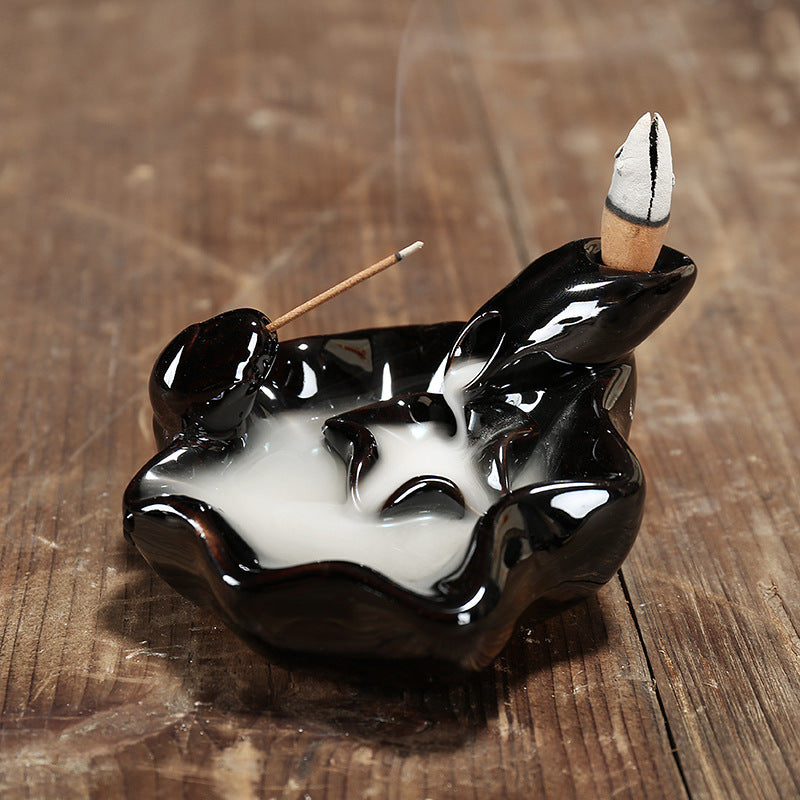 Porcelain Backflow Incense Holder - Black - 11.5x6.4 cm - China - NEW922