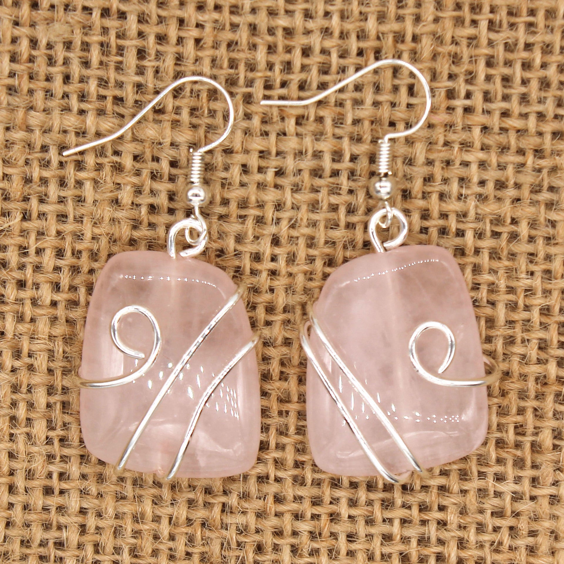 Rose Quartz Earring - Brass silver color plated - Size 25x20mm - NEW222