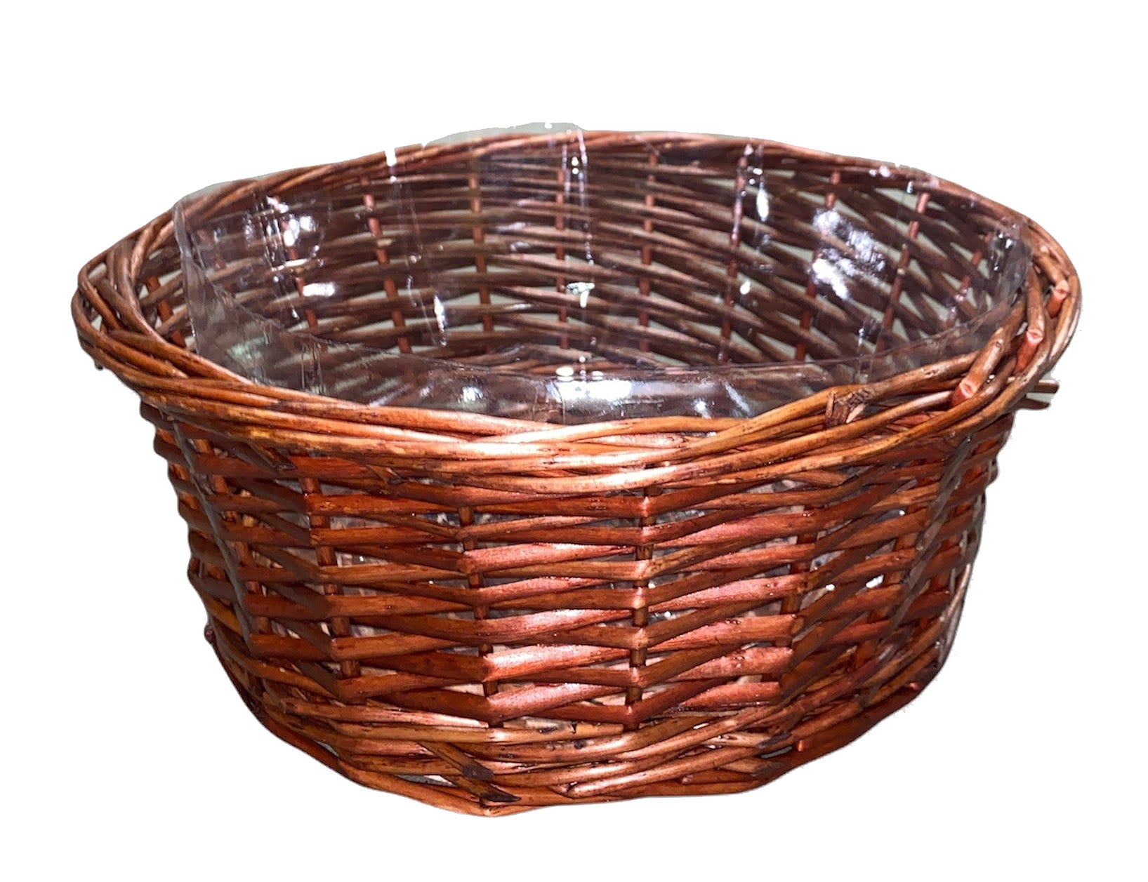 Round Split WILLOW TRAY - 12.36 x 4.78 inch deep - STAINED BROWN - with Hard Liner - fits a 20x30 basket bag - NEW222