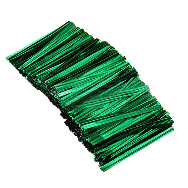 SINGLE WIRE BAG TIES - METALLIC GREEN 4 inch