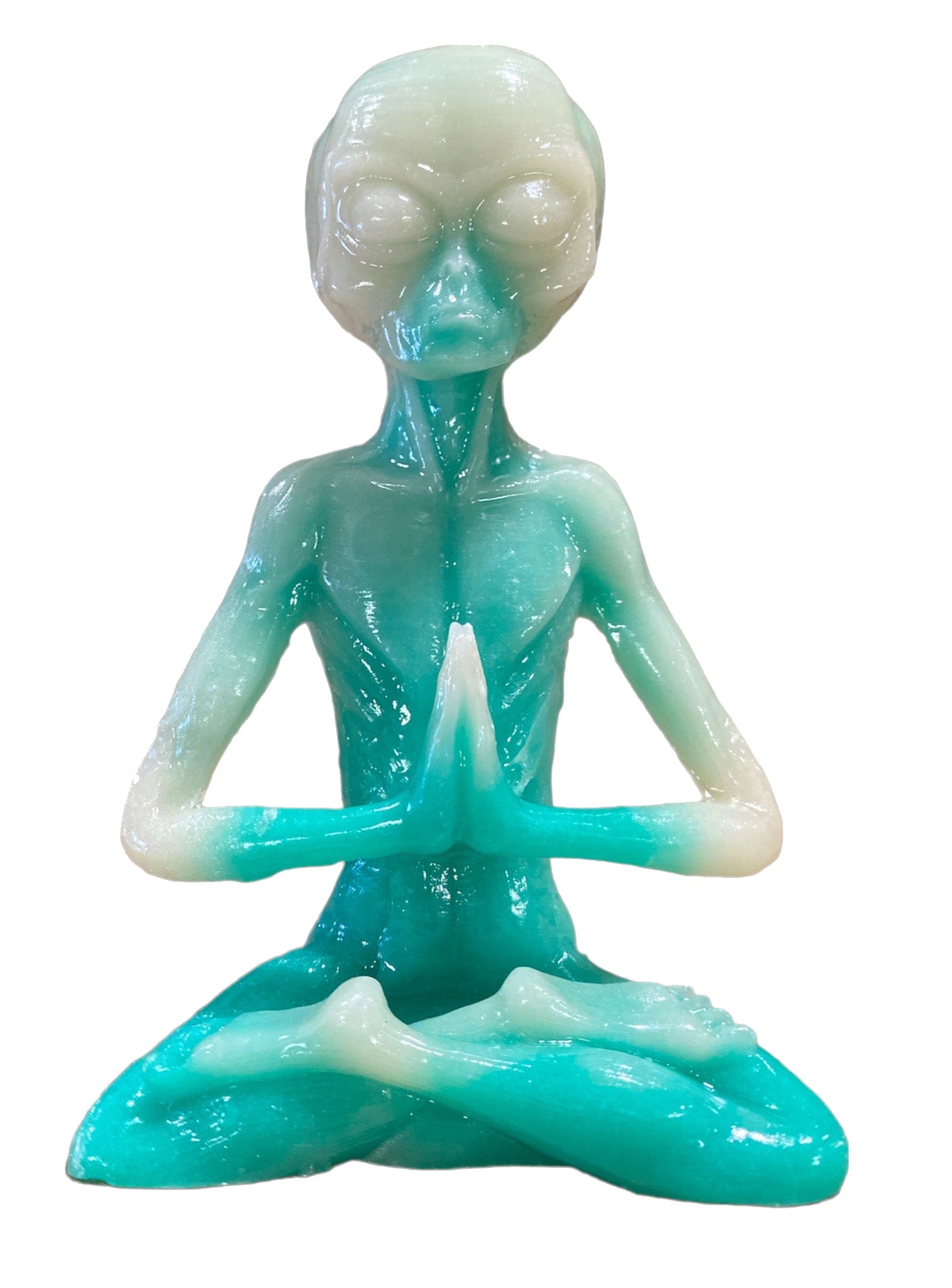Sitting Yoga Alien - Teal Luminous Resin - 5.75 inches - 15cm - China - NEW1022