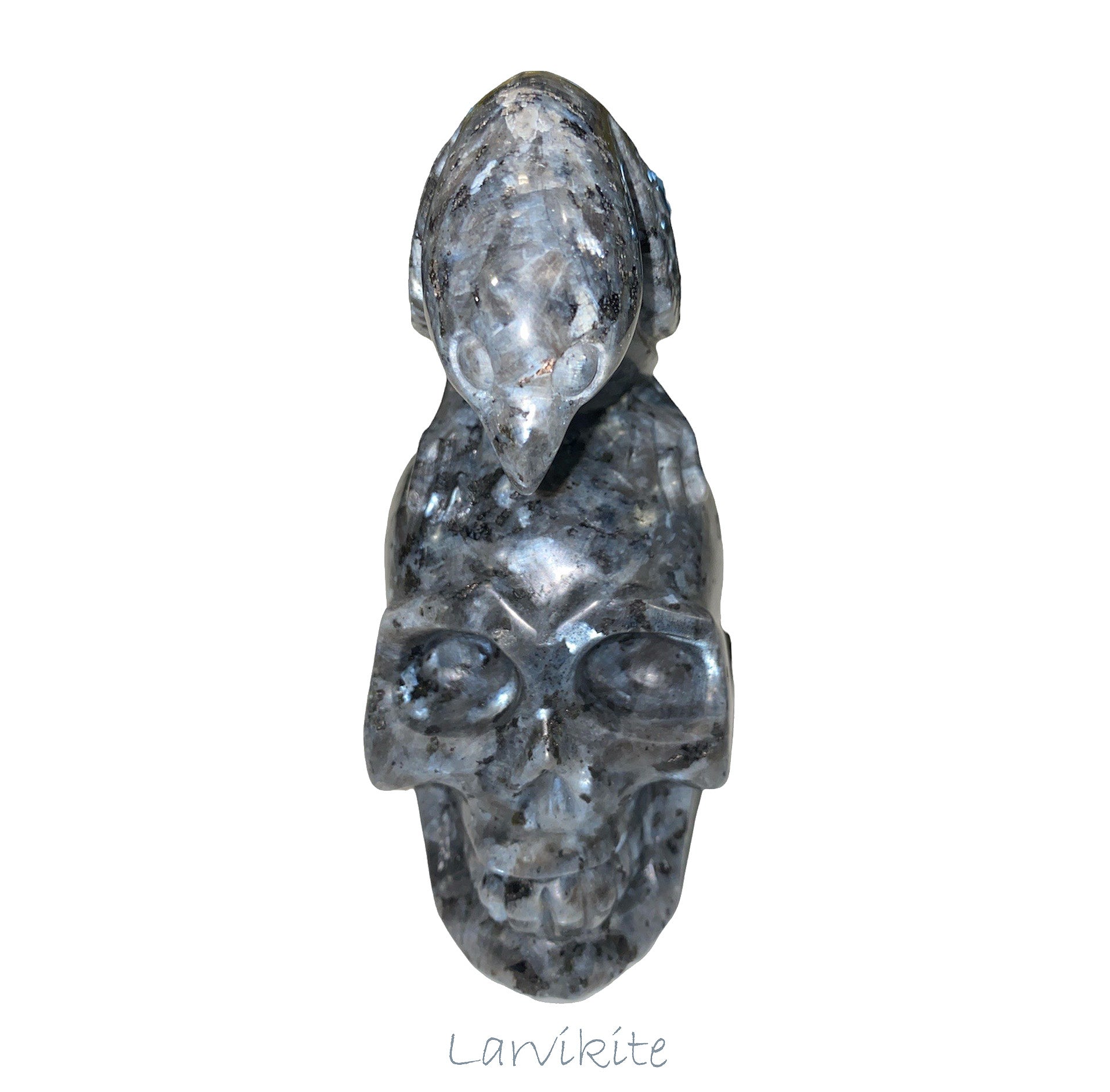 SKULL with Raven - LARVIKITE - MEDIUM 3.75x5x2.75 inch