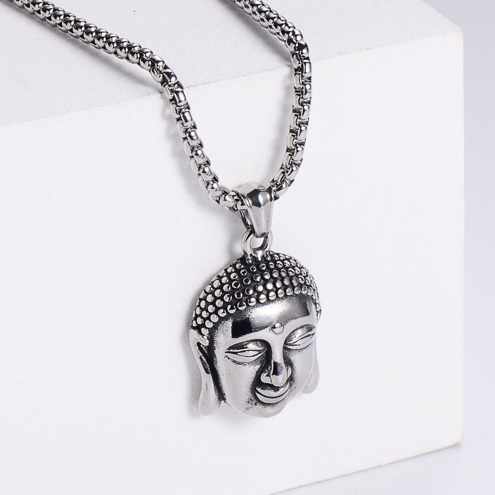 Stainless Steel Buddha Head Pendant with 60cm Chain - Silver Color - 29x24mm 17 grams - NEW922