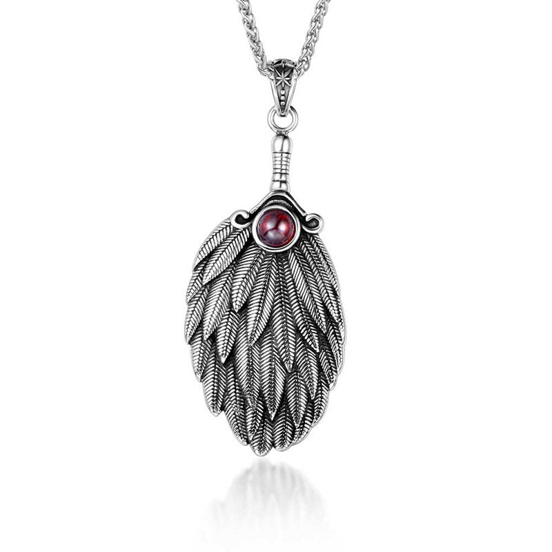 Stainless Steel Nordic Titanium Feather Pendant Polished Punk Style with Rhinestone 76.5mmx34.2mm