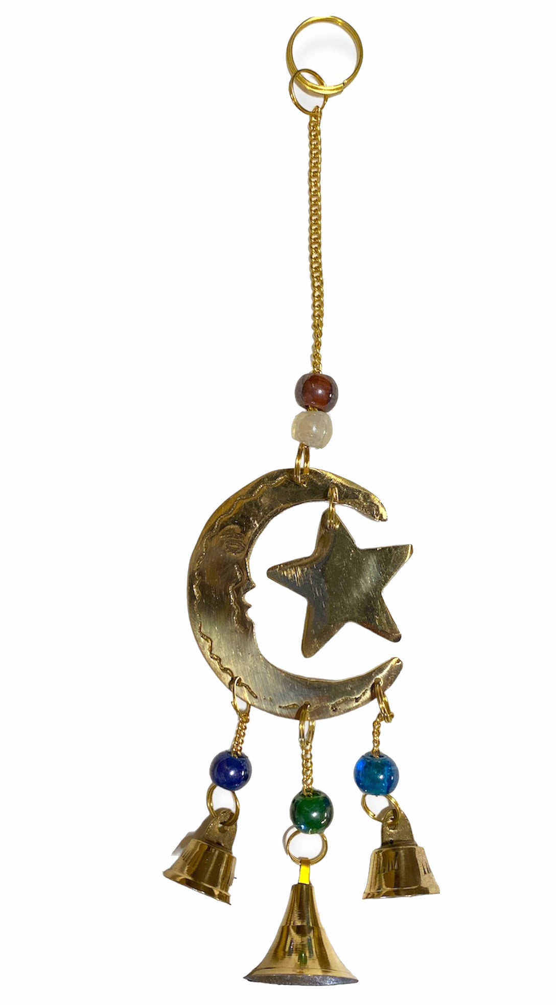 Star & Moon Design Brass WIND CHIME - 9 inch - India - NEW922