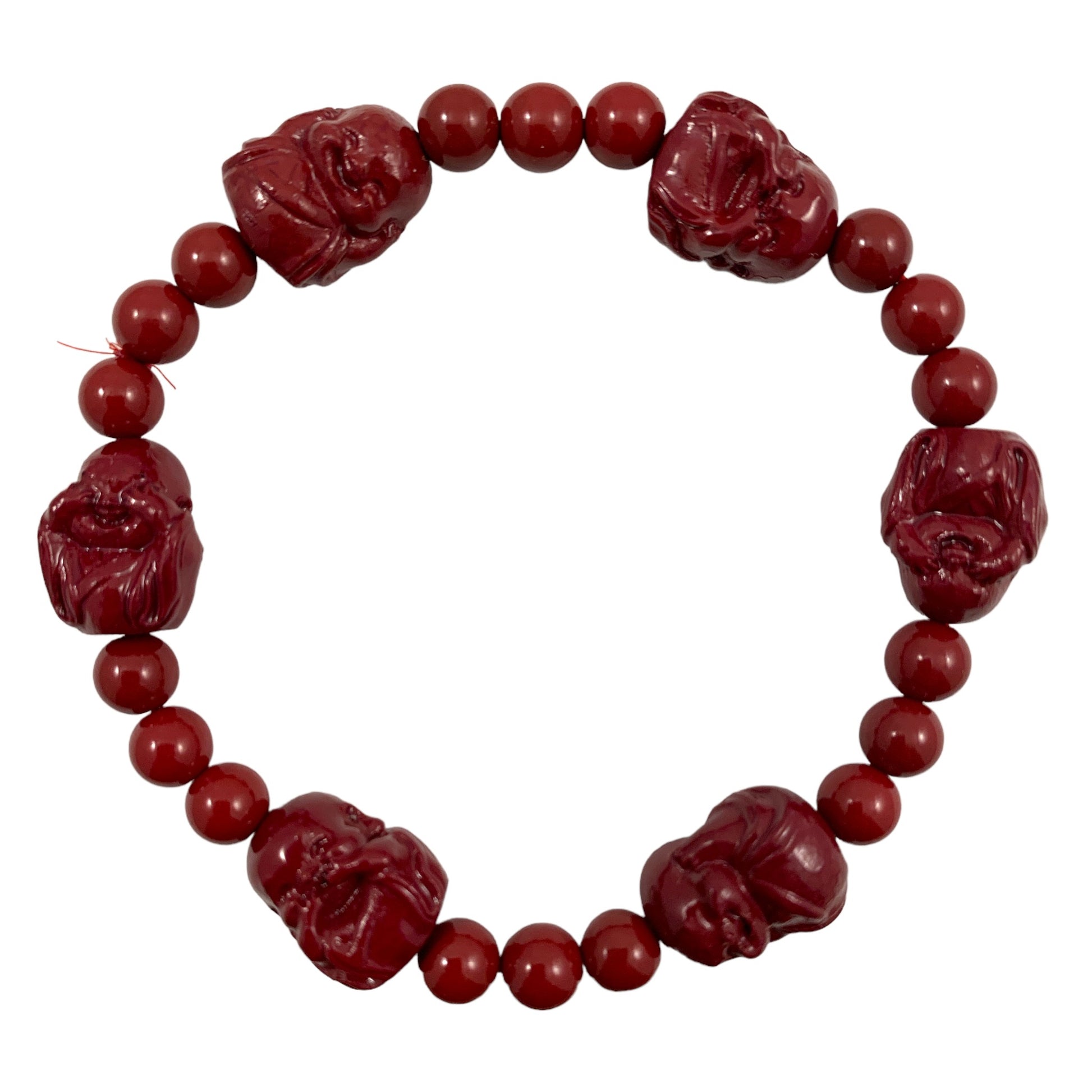 Tibetan Cinnabar Buddha Hear No See No with 8mm Round Bead Bracelet Mala - Approx 7.5 Inch - China - NEW123