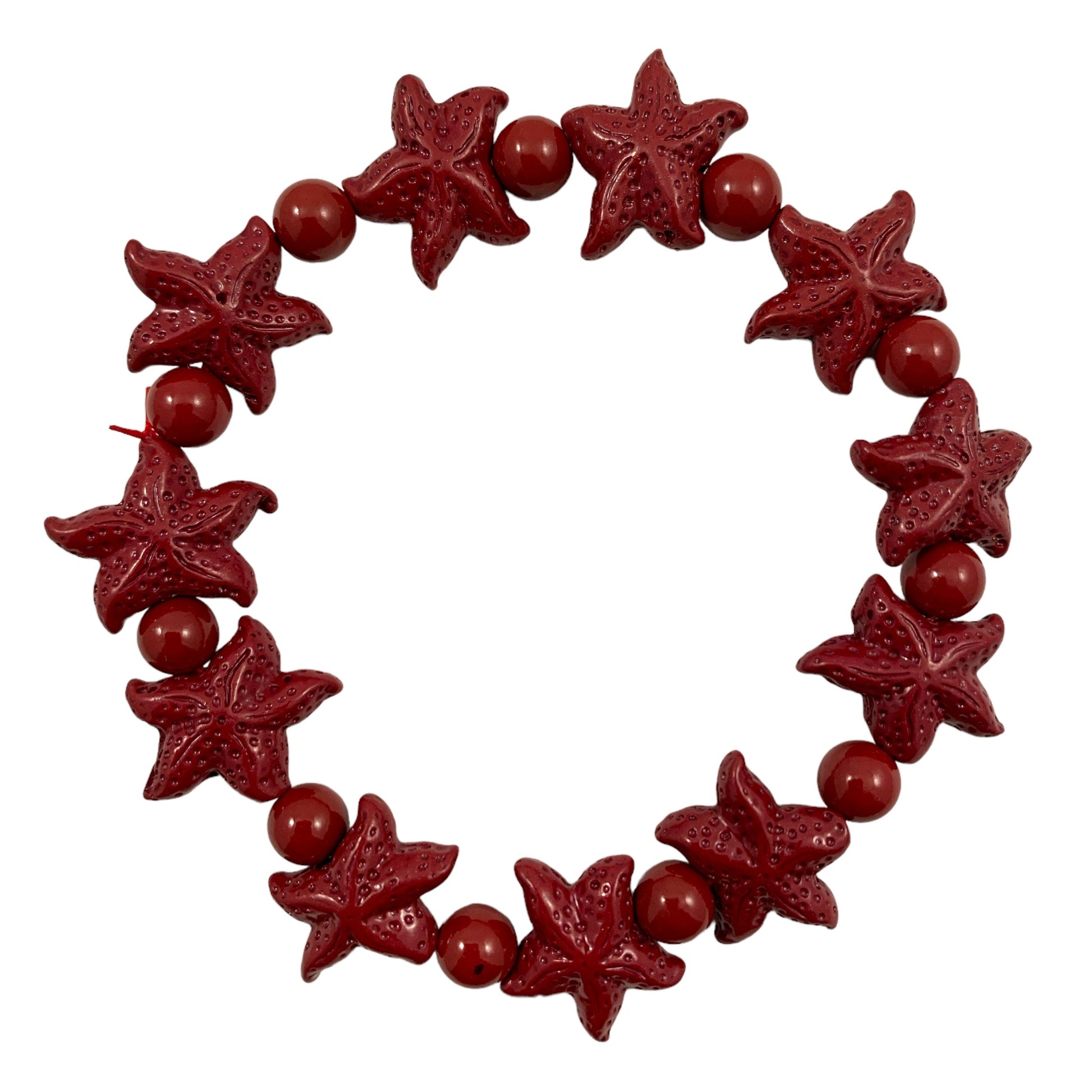Tibetan Cinnabar Starfish with 8mm Round Bead Bracelet Mala - Approx 7.5 Inch - China - NEW123