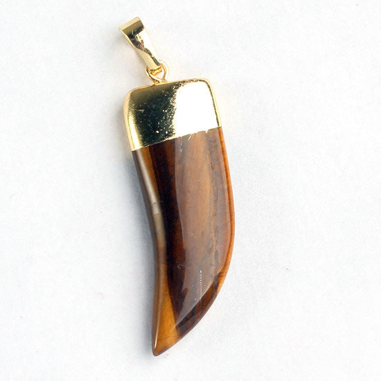 Tiger's Eye Bear Tooth Pendant - Brass - Gold Colour Plated