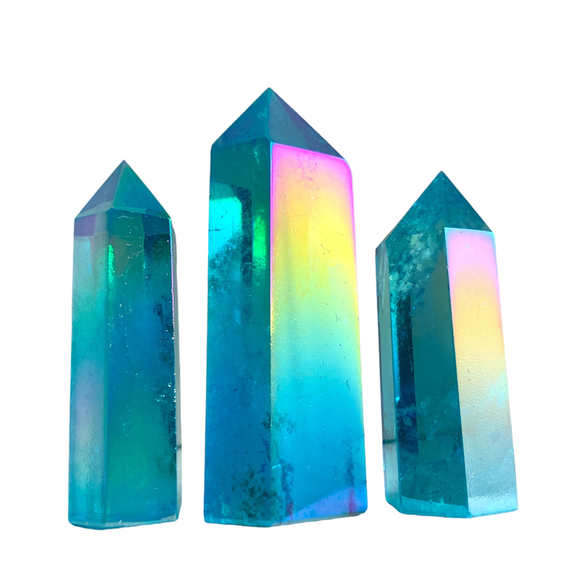 Aura Quartz is created by bonding fine metal particles (such as titanium or gold) to the crystals in a vacuum chamber with very high heat. You get the benefits of both the crystal and the metal, making aura crystals highly sought-after. They have a beautiful glow that resembles rainbow colours, and come in many forms. *Please Note: All our organic gemstones and crystals are formed by Mother Earth. Natural “imperfections” such as surface cracks, various defects, and the shedding of some crystals are to be expected. Our products are carefully graded, and if we believe there is an UNNATURAL defect - the item will go under our “Imperfect Collection” clearance category. Please research how to properly “cleanse” and charge your crystals, as some crystals must not get wet, and others will fade in prolonged sunlight. All sales are final.*