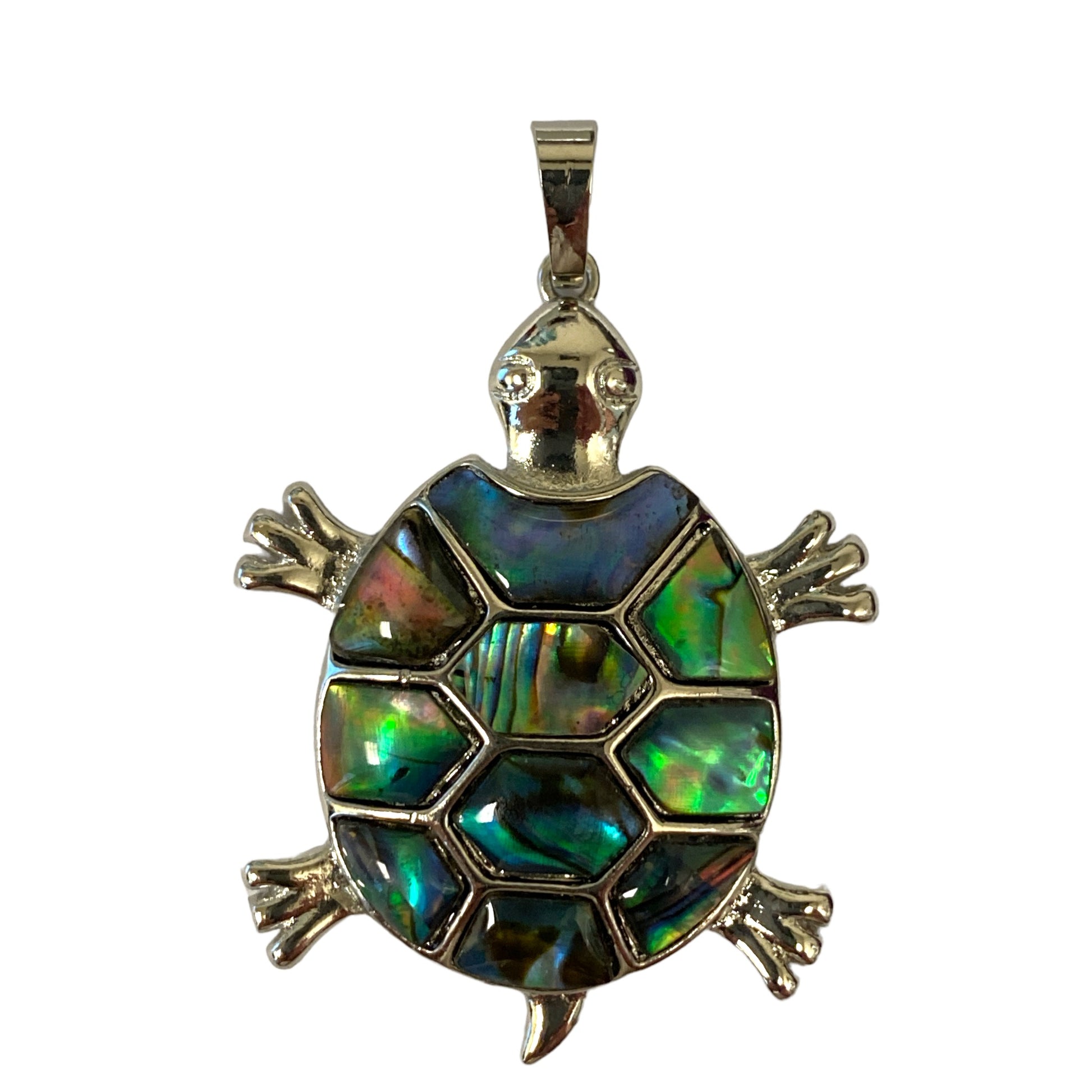 Turtle Pendant with Abalone Shell inlay - Silver Color Plated Metal - 42mm - China - NEW1022