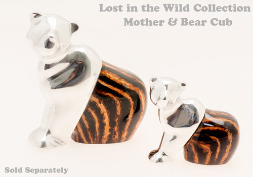 ALUMINUM SITTING BEAR FIGURINE WITH COCO TWIG Large